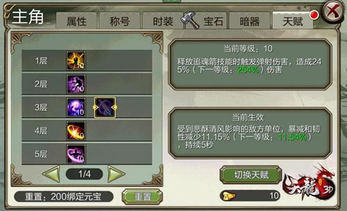 在每壹層天分中。每逢天分達到10級時,就會解鎖下壹層天分,例如在第10層天分中,天分晉級至10級後即可解鎖第11層的天分特點,為妳的江湖之路帶來更大優勢,所以諸位玩家不要急於求成,千萬不要只顧著升更高的天分等級,而錯過敞開更多天分層數的機會哦。