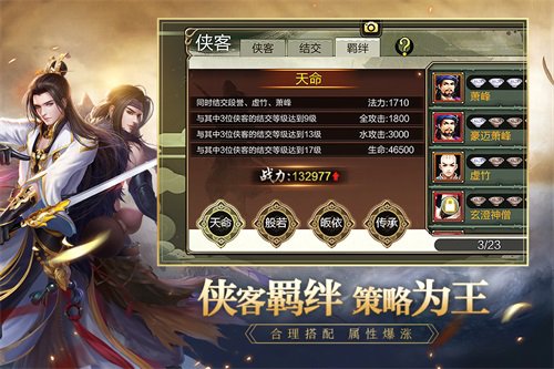 近战外功職業,重劍為器,天運加身,可喚醒皇室血脈,變身燕國鼻祖,強化自身;壹起還能夠彼之道,還施彼身,反彈對手的部分損傷。他的實力究竟有多強。 屆時我們能夠會不會對其它門派形成挑战,【俠客糾纏 策略為王 合理調配特點暴升】新增俠客結交和糾纏體系運用俠客專屬結交道具可提高與俠客的結交值。 當結交值到達必定數值後可提高結交等級,並添加俠客特點。當俠客結交數量及等級到達糾纏陣法要求時,耗費【鬼谷秘錄】可激活糾纏,獲得特點加成。 經過合理調配,裝備陣法,能讓妳的战力暴升!【坐騎圖鑒 搜集坐騎 外觀战力強強兼備】本次資料片新增超美坐騎——穹光海靈、珊瑚駒,壹起還新增坐騎圖鑒體系。