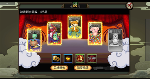 玩家需在商城中购买彩蛋锤子用来敞开彩蛋,跟着开蛋数量的增加,初级彩蛋会晋级为中级彩蛋,最终晋级为高级彩蛋,彩蛋奖赏会越来越丰盛! 【十二属相俏皮卡牌 翻盘数量成积分要害 】比翼齐飞活动想必各位玩家已经非常了解了,所以这儿不过多介绍,找到异性组队才是完成任务的要害! 今天具体给各位说明一下属相牌的玩法,首要玩家等级需要≥60级,每日每个人只能完成五局游戏,每天有三次免费抽牌的时机,第四次抽卡消耗10绑元。 后续每次抽卡需比前一次多消耗10绑元,各位玩家经过主题活动月界面,点击十二属相,玩家点击开始游戏后,随机抽出五张属相牌牌变成灰色作为底牌。