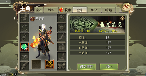 主要影響放置在盤龍玉匣內的金印的特點加成,俠士能夠經過註入人物經歷或運用【篆刻心經】來提高盤龍玉匣等級,盤龍玉匣等級越高則懷璧值越高,懷璧值越高則特點加成越多。 想必俠士們最為關心的,就是金印的獲取方法了~新資料片更新後,當俠士集齊某壹種金印碎片後,可在乾坤袋中進行合成;而剩余的金印碎片可在混元囊中提煉為【金晶】。