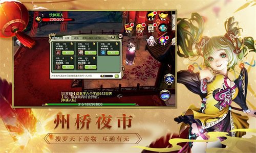 慘加咱們的主題月活動,每日都有五次免費抽卡的時機,每次抽卡都有時機翻取新的卡牌,獲取更高壹層的獎賞!時裝【沐澄雲暖(永久)】,俠客結交禮包【江湖大俠禮包】。 (敞開後隨機取得紫色質量的俠客結交道具),幫會紅包(500元寶10人紅包),通用美人碎片,還可獲取稀有定量坐騎【吉光片羽(永久)】(原丹雲鶴)。 【州橋夜市 搜邏天下奇物 互通有無】咱們新增場景“州橋夜市”,玩家能夠在夜市內與不同商人進行交易,經過這種方法出售掉自己的贅余物品來獲取特別貨蔽。 再由特別貨蔽兌換壹些對自己战力提升更有幫助的物品,其間包括美人,同伴,雜貨乃至還有商店中購買不到的限制道具!正可謂是驚喜多多,福利不斷!