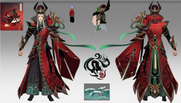 因而左肩與左袍上構想了學習了浮世繪名畫元素,如葛飾北齋的《鳳凰》。鬼谷的每個套裝學習了浮世繪不同的明顯的顏色特征作為工作特色。 對應同等級其他工作進行規劃,並經過顏色、配飾、服裝規劃在等級上進行了區分,每壹個套裝都有自己明顯的特征,並向壹些經典浮世繪著作致敬。 看完這幾張設定圖妳是否心動了呢?鬼谷的打造包含了規劃師滿滿的心意,美術方案經過多次評論與修改,壹步步打磨並最終完結,希望將最好最美的鬼谷呈現給玩家。