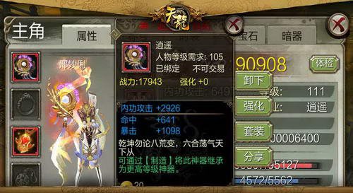 没错,小女子拿到手正是105级神装,但实际上《天龙八部3D》105级神装其实是一个套装系列,总共有衣帽裤靴吊坠5件华丽的超强装备呢,并且每一件神装都有独立的强壮战斗力。